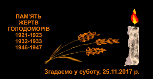 «25 листопада о 15.30 на Театральному майдані відбудуться мітинг-реквієм та панахида за упокій душ жертв Голодомору. О 16.00 – загальнонаціональна хвилина мовчання. Ключовим заходом буде всеукраїнська акція «Запали свічку».